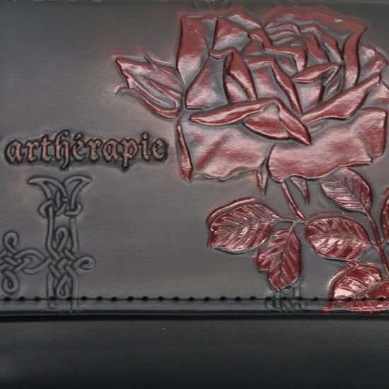 アルセラピィのアルファベットの文字をモノグラム表現した下地に、バラのモチーフを盛り上げ加工した一番人気のシリーズです。