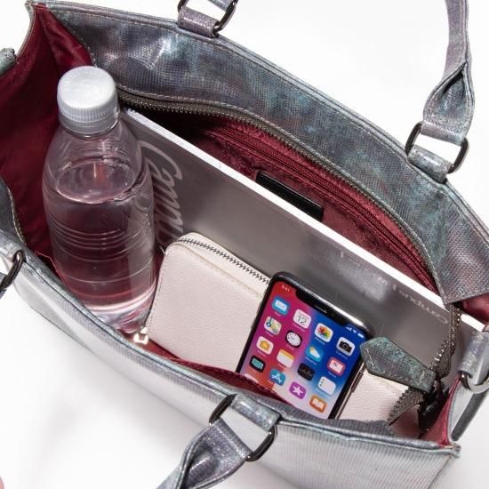 スクエアシェイプが凛とした佇まいの2WAYバッグ。手持ちで持っても、ストラップで肩から掛けても様になります。何度見ても飽きのこないアート作品を持ち歩く感覚でコーディネートをお楽しみください。