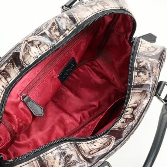 中世の屋敷から見つかった古びた写真のようなアンティークプリントに、防水性や耐久性を高めるためにPVCコーティングを施したオリジナルマテリアル。